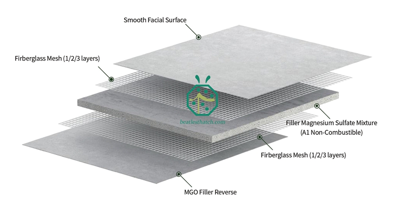 A placa de MGO é reforçada com múltiplas camadas de malha de fibra de vidro, o que lhe confere alta resistência a ventos fortes e impactos. Por ser um material mineral inorgânico, resiste a danos causados por cupins e corrosão fúngica, tornando-a muito mais confiável do que os painéis de madeira tradicionais.