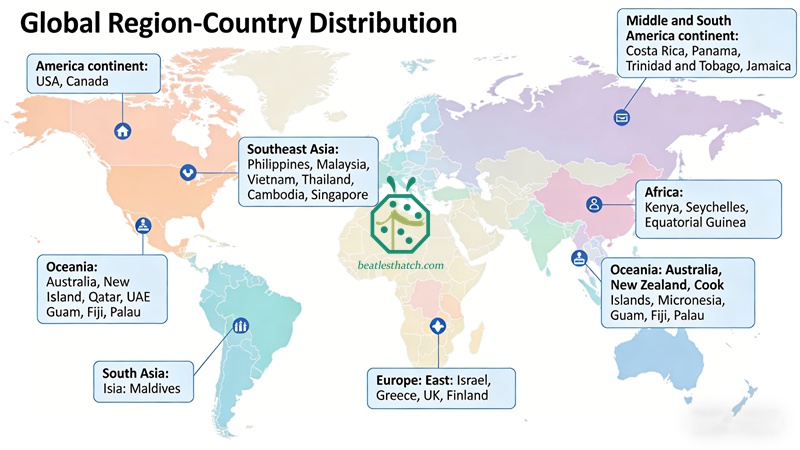 Filipinas, Malásia, Vietnã, Tailândia, Camboja, Singapura