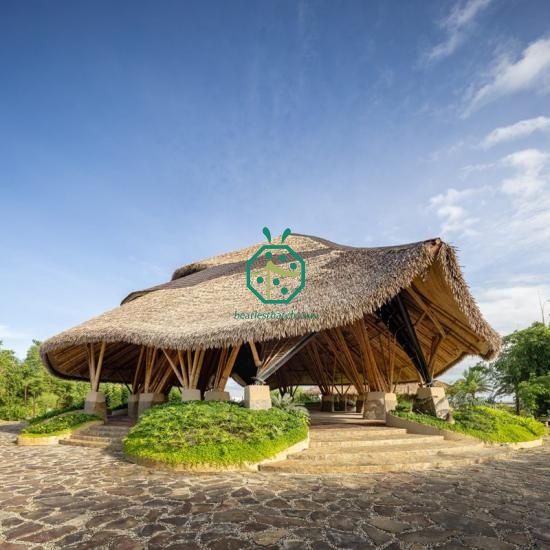 Telhado de palha sintética à venda É uma alternativa perfeita para criar um belo espaço com um toque tropical para sua área residencial ou hotel de praia. O material artificial para telhados de palha é a escolha mais bonita e prática para criar uma atmosfera exótica ou tropical relaxante e de baixa manutenção, seja em um hotel de praia, pátio de jardim ou casa de madeira na montanha. Os materiais sintéticos para telhados de palha são amplamente utilizados em países litorâneos, principalmente para uso residencial ou em projetos de hotéis e resorts, com o objetivo de criar um ambiente tropical. Produtos de palha artificial de alta qualidade são um bom investimento. Embora o preço seja mais elevado do que o de um telhado de palha natural, você adquire telhas de palha sintética com aparência natural que duram mais de 10 anos, com muito menos necessidade de reparos ou substituições frequentes.